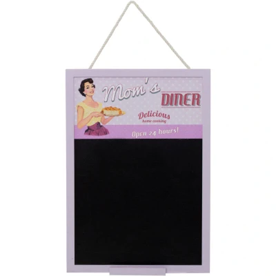 General description Made from reliable MDF, the Premier Housewares Doris Chalkboard features a 50's style design with colorful pink tones. It showcases a retro female character along with nostalgic phrases such as 'Mom's diner', 'delicious home cooking', and 'open 24 hours'.
