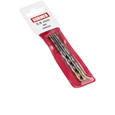 General description The Dormer A002 HSS-TiN Coated Jobber Drill Bits come in a convenient pouch of 2. Designed for precision and efficiency, these drill bits feature a pointed web and fluted tip design that enhances cutting performance and accuracy. Technical specifications Tip Diameter: 3.30mm Working Length: 36mm Overall Length: 65mm Usage Efficient cutting with reduced axial force for accurate centering Optimized strength and rigidity for improved feed Effective chip formation and evacuation Bright body enhances cutting performance on ductile materials Titanium Nitride coating resists wear and allows for increased cutting speeds