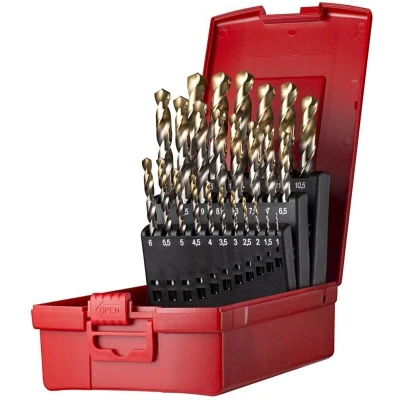 The Dormer A095 No204 Set is a premium collection of 25 jobber drills, expertly designed for professionals and enthusiasts alike. Manufactured from high-speed steel (HSS) with a Titanium Nitride (TiN) coating, these drills are engineered for maximum durability and exceptional performance, making them ideal for a wide range of drilling applications across various materials, including metals such as steel and aluminium.