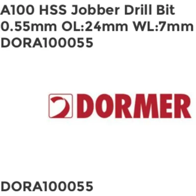 General description Dormer A100 Metric HSS jobber drills are designed for general-purpose drilling in steel and cast iron applications. They offer good self-centering capabilities and are suitable for both hand and machine use, making them ideal for a wide range of engineering tasks. Technical specifications Model: A100 Overall Length: 20mm Tip Diameter: 0.45mm Working Length: 5mm Material: HSS (High-Speed Steel) Cutting Angle: 118° Cutting Profile: Right-hand cut Perforation Depth: 4xD Nominal Tolerance: h8 Compatibility and accessories Compatible with standard drill chucks for general drilling in steel and cast iron Suitable for use with drill presses and handheld drills Installation Insert the drill bit into a compatible drill chuck Secure tightly to prevent slipping during operation Ensure the drill is set to the appropriate speed for steel or cast iron drilling Usage Use for drilling holes in steel, cast iron, and similar materials Apply steady pressure and maintain proper speed