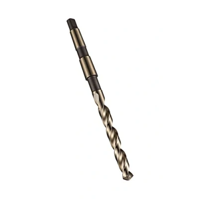 High Speed Cobalt (HSCo) provides superior hot hardness when drilling 118 degree conventional point provides easy re-grinding Point Thinned above 14mm to provide good centering and reduced thrust forces Bronze finish identifies Cobalt based substrate and reduces built-up-edge Common taper shanks across numerous diameters helps reduce workholding