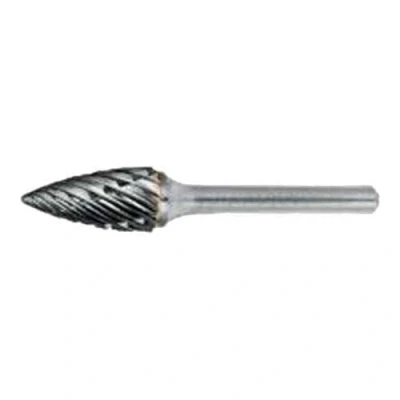 Bright finish - prevents work piece material from sticking to the cutting edge Premium Carbide material - carbide provides superior performance and extend tool life at high speeds ST geometry - designed to maximize material removal when machining steel Toughened and hardened steel shank - provides rigidity and strength decreasing vibrations for extended tool life Pointed Tree shape (Shape G ) - enables efficient de-burring when used in tight corners