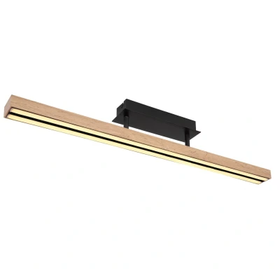 This modern ceiling lamp of the Doro series beautifies your interiors in an elegant style. Two LED boards with pleasantly warm white light (3000 Kelvin) run the full length of the luminaire (81.5cm) parallel to each other and form the luminaire with a frame in wood look. In addition, the luminaire has three adjustable light levels with a memory function. Product features: Ceiling light metal black matt, mdf wood look, acrylic opal, memory function, lxwxh: 815x75x140mm, incl. led 24w 230v, 1920lm source, 850lm output, 3000k
