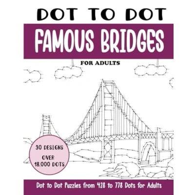 Dot to Famous Bridges for Adults: Connect the Dots Book Adults (Over 18000 dots) (Dot Books Adults)
