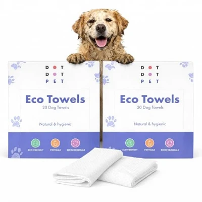DotDotPet Eco Dog Towels for Drying Dogs (2 x 20 Pack) Natural Fibre, Super Absorbent Plastic Free & Skin Kind Cleaning Wipes Ideal Muddy Walks, Wet Bath Time