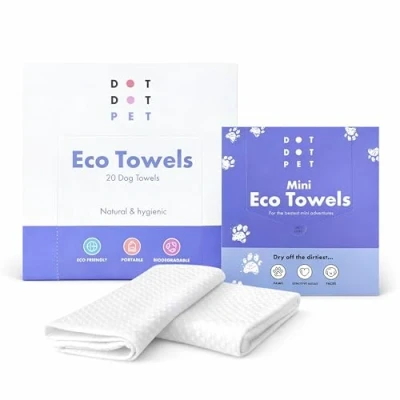 DotDotPet Eco Towels Combo Pack (30 Pack) Large + Mini for Pets Complete Natural Drying Kit Plastic Free & Super Absorbent Ideal Wet Dogs, Muddy Paws On the Go Clean Ups