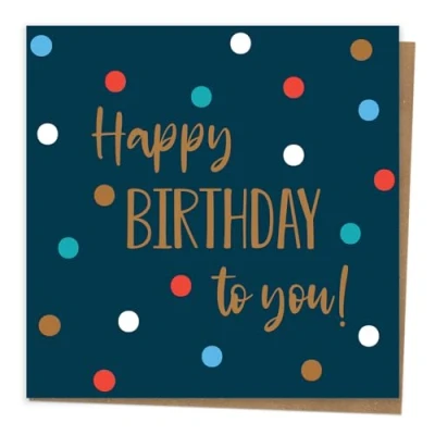 SIMPLE DESIGN: This card has a simple but stylish design that would be loved by anyone who receives it. Colourful spots surround the words 'Happy Birthday to you!' which is printed onto a navy background. HIGH-QUALITY AND AFFORDABLE: These 142 x 142 mm cards are printed on top quality card stock. The bright colours stand out against the 350 gsm white matte card, making them so eye-catching. They come complete with a thick blue envelope, meaning they're also so easy to send. MADE WITH LOVE IN THE UK: Here at dotty about paper, our stationery is designed, printed, and hand-packed with love in the UK! This design is completely unique to dotty about paper, meaning you won't be able to find it anywhere else! All of our customer service is also handled in house in the UK - we are always happy to help! We are also investing in programs to help us be kinder to the environment. ADD YOUR OWN HAND-WRITTEN MESSAGE: These cards have plenty of blank space inside, making it easy to add your own hand-written message. LOTS MORE DESIGNS AVAILABLE: Visit our dotty about paper store.