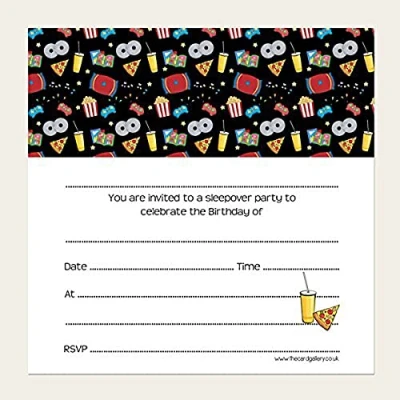 Dotty about Paper Children's Birthday Invitations Boys Sleepover Party Pack of 10. Fun Design, Bright Colours, and Girls, Children, Pizza, Fast Food, Video Games. Envelopes Included (L145)