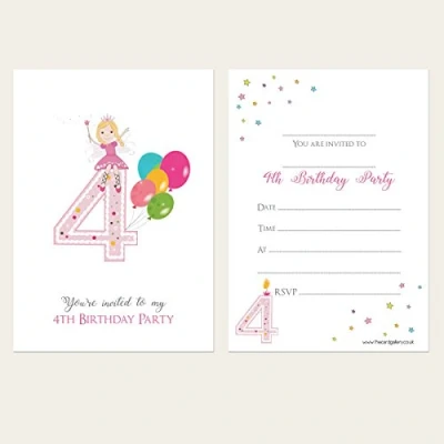 Dotty about Paper Kids Invitations Girls 4th Birthday Fairy Pack of 10. Friends, Party, Celebration, School Children, Classmates, Primary, Milestones. Envelopes Included (623)