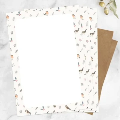 BEAUTIFUL DESIGN - Light pastel colours depict robins, sparrows, holly berries, acorns, and forest foliage. This woodland scene is a festive choice for sending Christmas notes to friends and family. The merry border surrounds a blank space so you can hand-write your letters. A wonderful way to send out season's greetings, thank you messages, and more, these notelets are sure to delight recipients. HIGH QUALITY - These notelets are printed onto a high quality 100gram white paper and supplied with thick kraft envelopes. EASY TO SEND - The notelets measure 143 x 205mm and the envelopes that come with this writing set allow you to send your letters to their recipient easily. GREAT GIFT - This notelet writing set would be an ideal gift for your loved ones for Christmas, birthdays, or any other occasion for friends and family alike to help them send out their thank you's or letters with ease. MADE WITH LOVE IN THE UK - Here at dotty about paper, our stationery is designed, printed, and hand-packed with love in the UK! All of our customer service is also handled in house in the UK - we are always happy to help! We are also investing in programs to help us be kinder to the environment. The paper, envelopes, and bag are widely recycled and are created with Forest Carbon-certified materials for an eco-friendly product.