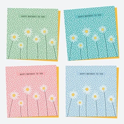 BEAUTIFUL DESIGN: These lovely designs will be appreciated by anyone who receives them. This pack of cards features 4 single birthday cards cards suitable to wish someone special a happy birthday HIGH-QUALITY AND AFFORDABLE: These 142 x 142 mm cards are printed on top quality card stock. The bright colours stand out against the 350 gsm white matte card, making them so eye-catching. They come complete with a thick envelope, meaning they're super easy to send. Envelope colour may vary. MADE WITH LOVE IN THE UK: Here at dotty about paper, our stationery is designed, printed, and hand-packed with love in the UK! This design is completely unique to dotty about paper, meaning you won't be able to find it anywhere else! All of our customer service is also handled in house in the UK - we are always happy to help! We are also investing in programs to help us be kinder to the environment. ADD YOUR OWN HAND-WRITTEN MESSAGE: These cards have plenty of blank space inside, making it easy to add your own hand-written message. SIMPLE AND CONVENIENT: This pack of cards is perfect to have on hand - just in case you miss a special birthday or if you are short on time to nip to the shop!