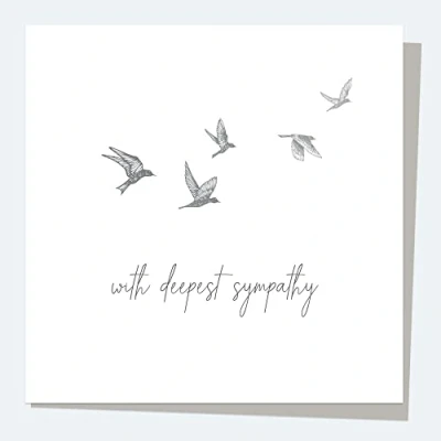 BEAUTIFUL DESIGN: This pretty design will be appreciated by anyone who receives it. It features five birds flying against a white background with the words 'with deepest sympathy' HIGH-QUALITY AND AFFORDABLE: These 145 x 145 mm cards are printed on top quality card stock. The watercolours stand out against the 350 gsm white matte card, making them so eye-catching. They come complete with a thick grey envelope, meaning they're also so easy to send. MADE WITH LOVE IN THE UK: Here at dotty about paper, our stationery is designed, printed, and hand-packed with love in the UK! This design is completely unique to dotty about paper, meaning you won't be able to find it anywhere else! All of our customer service is also handled in house in the UK - we are always happy to help! We are also investing in programs to help us be kinder to the environment. ADD YOUR OWN HAND-WRITTEN MESSAGE: These cards have plenty of blank space inside, making it easy to add your own hand-written message. Wording inside reads '"Sorry to hear of your loss." LOTS MORE DESIGNS AVAILABLE: Visit our dotty about paper store.