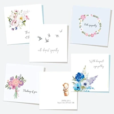 BEAUTIFUL DESIGN: These lovely designs will be appreciated by anyone who receives it. This pack of cards features 6 single sympathy cards suitable to let a special person know you are there for them. HIGH-QUALITY AND AFFORDABLE: These 145 x 145 mm cards are printed on top quality card stock. The bright colours stand out against the 350 gsm white matte card, making them so eye-catching. They come complete with a thick envelope that corresponds with their colour theme, meaning they're also so easy to send. MADE WITH LOVE IN THE UK: Here at dotty about paper, our stationery is designed, printed, and hand-packed with love in the UK! This design is completely unique to dotty about paper, meaning you won't be able to find it anywhere else! All of our customer service is also handled in house in the UK - we are always happy to help! We are also investing in programs to help us be kinder to the environment. ADD YOUR OWN HAND-WRITTEN MESSAGE: These cards have plenty of blank space inside, making it easy to add your own hand-written message. SPECIAL AND MEANINGFUL CARDS: A card is such an easy way to brighten up someone's day when they're going through a tough time, and shows them that you're thinking of them even if you aren't with them.