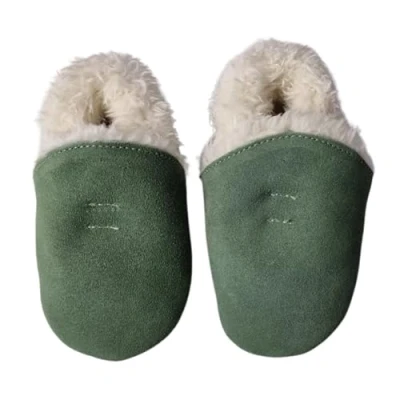 Dotty Fish Baby & Kids Suede Barefoot Slippers Boys Girls, 6 Styles, Non Slip Soft Soles, Warm Fleece Lined House Shoes, Elasticated Ankles, Podiatry Approved Green 12 18 Months