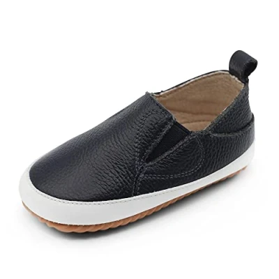 Dotty Fish Leather Infant Casual Shoes. Baby Boys Girls Slip on Rubber Sole Trainers. First Walkers. Non Navy ‘Stomp’ Toddler Shoes (5 UK Child)