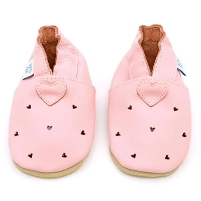 Dotty Fish Soft Leather Baby and Toddler Shoes. Girls. Non Slip Suede Soles. Pink Shoes with Cut Out Hearts. 18 24 Months (6.5 UK Child)