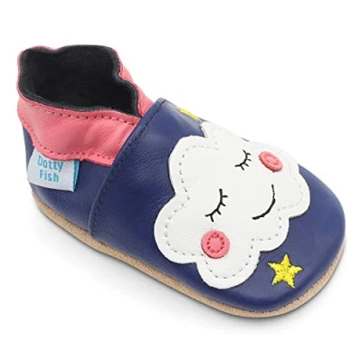 Dotty Fish Soft Leather Baby Shoes Toddler Non Slip Shoe with Sleepy Cloud Girls, 3 4 Years, Blue Clouds