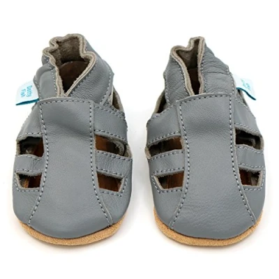 Dotty Fish Soft Leather Baby Shoes with Suede Soles. Toddler Sandals. Boys & Girls Grey 0 6 Months (1 UK Child)