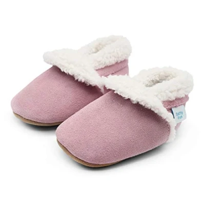 Dotty Fish Suede Baby Slippers. Warm Fleece Lined. Toddler Young Kids Shoes. Non Slip Soft Sole. Girls. Pale Pink. 4 5 Years (10 UK Child)