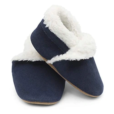 Dotty Fish Toddler Soft Suede Slippers Non Slip, Warm Fleece Lined Shoes Navy Blue. 4 5 Years (10 UK Child)