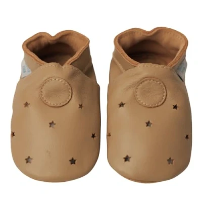 Dotty Fish Unisex Soft Leather Baby & Kids Shoes Barefoot, Non Slip Suede Sole, Podiatrist Recommended, Lightweight, Flexible, Breathable, British Brand Mocha Cut Out Stars 12 18 Months