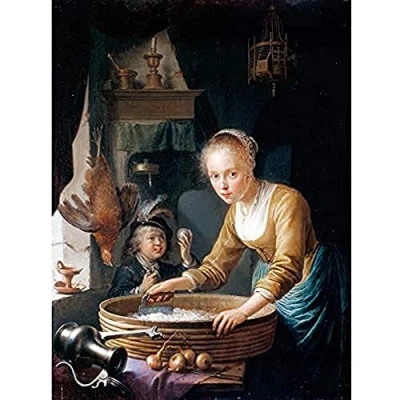 Dou Girl Schneidezwiebeln Kind Küche Malerei ungerahmt Wandkunst Poster Home Decor Premium