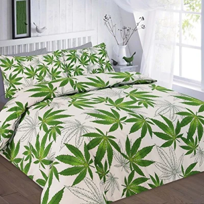 Size: Double, 200cm x 200cm (79" x 79") Feature: Green and white duvet set with cannabis marijuana leaf design duvet set Colour: Green Material: 50% Cotton and 50% Polyester. Created using unique finish to ensure softness and quality Machine Washable at 30ºc, Wash Dark Color Separately (Recommended)