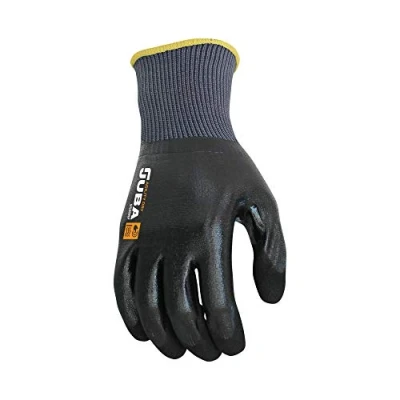 ULTIMATE WORK GLOVES: Easy to pull on and off, ergonomically formed, and super flexible, you’ll be able to wear these gloves all day long without discomfort or fatigue in your hands. The snug-fitting knit wrist prevents dirt from entering the gloves A HELPING HAND: Discover gloves that work as hard as you do! Get excellent flexibility and ultimate comfort while you work with these Juba gloves. The reinforcement between the thumb and the forefinger ensures greater resistance to wear and tear HIGH-PERFORMANCE MATERIALS: These reusable work gloves are made of seamless Nylon with a double nitrile coating combined with a water-based PU. They have excellent abrasion resistance that increases durability GET A GRIP: Coated with a layer of flat nitrile and a second layer of sandy nitrile with water-based PU for greater grip in dry, wet and oily conditions. They are touch screen compatible and contact heat resistant up to 100ºC at 15 seconds MULTIPURPOSE: The high-dexterity gloves allow you to work with precision and control. They are ideal for general handling and DIY in dry, humid and oily environments, light assembly work, automotive repair, gardening, warehousing, and more