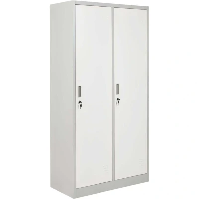General description Keep your essentials neat and secure with this sturdy Double Door Storage Locker, designed for busy changing rooms in gyms, schools, or workplaces. Made from durable powder-coated steel, it features two doors with four shelves and handy rails for hanging clothes. With lockable doors for added peace of mind, it’s a practical way to keep everything organized in one place. Technical specifications Style: Industrial General Color: White, Grey Shade: Light Grey Main Material: Steel Number of Shelves: 4 Number of Doors: 2 Doors Opening: Standard Key Locked: Yes Dimensions: Depth: 45 cm, Width: 90 cm, Height: 180 cm Weight: 45 kg Installation Full Assembly Required Estimated assembly time: 20-40 min Usage Ideal for storing clothes and personal items in gyms, schools, or workplaces Other information Maintenance tips: Clean with a mild cleaner and soft cloth, wipe dry afterwards. To avoid scratches, do not use abrasive cleaners. For copper or chromed elements, use a polish