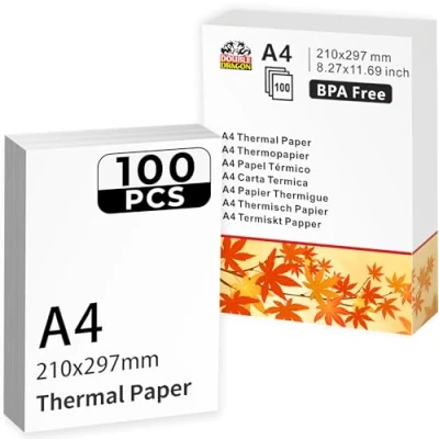 ✅ PREMIUM THERMAL PAPER: High-quality A4 thermal paper (210x297mm) for sharp, clear, and professional-grade prints. No ink or toner required, ensuring a hassle-free printing experience. Pack of 100 sheets. ✅ WIDE COMPATIBILITY: Works seamlessly with Phomemo M08F, M832, M834, Q302, and other A4 thermal printers like Brother, Munbyn, and Double Dragon. Not compatible with laser, inkjet, or copier machines. ✅ SMOOTH & QUICK-DRYING PRINTS: Specially coated to prevent paper jams, delivering sharp, high-contrast text and images that dry instantly without smudging. Ideal for resumes, contracts, agreements, homework, and more. ✅ DURABLE & WATER-RESISTANT: Thermal coating protects prints from fading, water, and smudges, ensuring long-lasting quality. Prints can last up to 10 years when stored in a dark, dry place. ✅ ECO-FRIENDLY & COST-EFFECTIVE: BPA-free, ink-free, and RoHS-certified, providing an environmentally friendly and cost-efficient alternative to traditional printing methods.