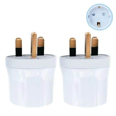 ✅ UNIVERSAL EU TO UK CONVERSION: Easily converts European 2-Pin (Type C, E, F) plugs to standard UK 3-pin Type G plug. Ideal for using devices from France, Germany, Spain, Italy, and other EU countries in the UK. (WARNING: Not compatible with UK 2-pin shavers or toothbrush plugs.) ✅ BS8546 CERTIFIED & 13A FUSED SAFETY: The plug adapter is tested to BS8546 standards and equipped with a BS1362-certified 13A fuse. CE & ROHS approved for safe, compliant use with appliances up to 3120W, 250V. ✅ FIRE-RESISTANT & CHILD-SAFE DESIGN: Constructed with high-quality flame-retardant PC material (resistant up to 750°C) and pure copper components. Built-in child safety shutters help prevent accidental contact. ✅ LIGHTWEIGHT & TRAVEL-FRIENDLY: Compact, low-profile adapter fits snugly into UK wall sockets without sticking out. Perfect for travelers, business professionals, or expats needing reliable plug conversion. ✅ COMPATIBILITY FOR EVERYDAY DEVICES: Use to safely power smartphones, laptops, tablets, hair dryers, and other electronic gadgets when traveling or relocating to the UK from EU countries.