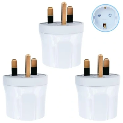 ✅UNIVERSAL EU TO UK CONVERSION: Easily converts European Type C, E, and F 2-pin plugs to standard UK 3-pin Type G. Ideal for using devices from France, Germany, Spain, Italy, and other EU countries in the UK. (WARNING: Not compatible with UK 2-pin shavers or toothbrush plugs.) ✅BS8546 CERTIFIED & 13A FUSED SAFETY: Tested to BS8546 standards and equipped with a BS1362-certified 13A fuse. CE & ROHS approved for safe, compliant use with appliances up to 3120W, 250V. ✅FIRE-RESISTANT & CHILD-SAFE DESIGN: Constructed with high-quality flame-retardant PC material (resistant up to 750°C) and pure copper components. Built-in child safety shutters help prevent accidental contact. ✅LIGHTWEIGHT & TRAVEL-FRIENDLY: Compact, low-profile adapter fits snugly into UK wall sockets without sticking out. Perfect for travelers, business professionals, or expats needing reliable plug conversion. ✅COMPATIBILITY FOR EVERYDAY DEVICES: Use to safely power smartphones, laptops, tablets, hair dryers, and other electronic gadgets when traveling or relocating to the UK from EU countries.