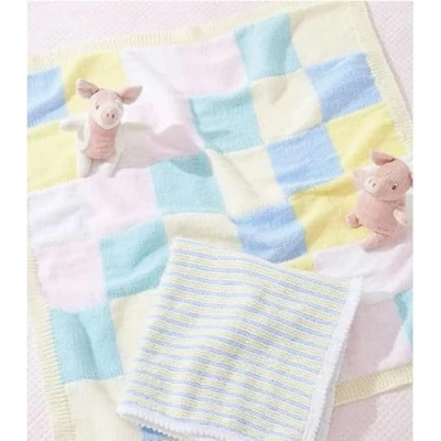 Double Knit Knitting Pattern for Baby Blanket Striped Squares Lace or Textured (UKHKA 246)