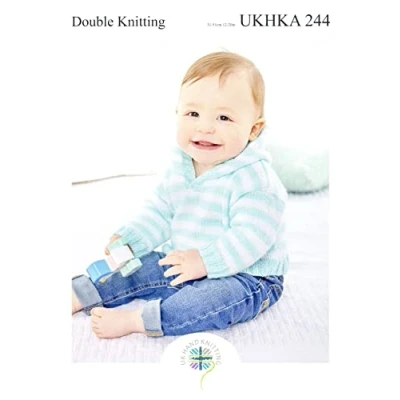 Double Knit Knitting Pattern for Baby Striped or Plain Hoodie & Sweater (UKHKA 244)