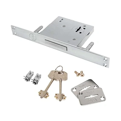 Double map security lock for railways and gates Lobster only - 2 spindles with 45.50,60 mm inlets and 3 locking points M8 fittings for threaded rods included with front 240x25x3mm Lock box height 82 mm; both lock and front in galvanised steel., Weight: 1.543235834 pounds, Manufacturer: YALE