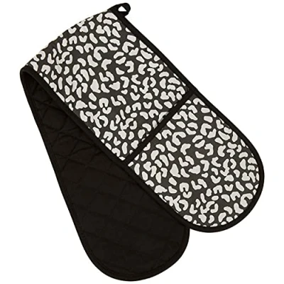 AmazonMaterial, made out of cotton with subtle quilting, this oven glove is perfect for holding your hot pans and pots Black and white colour, the double oven glove is of black and white colour, it features a monochrome contrast Easy storage, the oven glove features a hanging loop that allows you to hang it when it is not in use Easy to clean, you can clean this oven mitt either using your washing machine or your hands, whatever suits you Size and dimensions, the oven mitt comes in an optimal size and has the following dimensions 83x18x2 cm