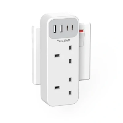 6 in 1 Plug Adaptor: This adapter plug UK could turn 1 socket into 2 AC outlets and 4 USB (2 USB-C) ports, can charge 6 devices simultaneously without blocking; You can use it in any indoor place such as home, office and dorm room USB C Plug Extender: Dual USB A slots features 2.4A, the USB C port features 3A; 2 types of USB ports can detect charged devices and dynamically distribute current; The USB C port is not Quick Charger 3.0, doesn't support any other devices which need 9 to 22V charging voltage Space Saving: Plug this multi plug adaptor any side of the socket without blocking the other, and create a multiple port charging station in your bedroom, bathroom, living room or any area with limited outlets Safe Multi Outlet: This multiplug extension provides safety for your devices; With a built-in 13A fuse, it protects your valuable hairdryers, shavers, and other appliances from overload, the plug adapter with USB allows for a reliable charging environment Compact Size for Travel: With only 184 g lightweight design, portable size double adapter plug UK can easily fit your suitcase, backpack and handbag, ideal for your travel and business trip; No surge protection, no cords, making it fully cruise ship essentials, Weight: 0.4850169764 pounds, Manufacturer: Zhuhai Tessan Power Technology Co., Ltd.