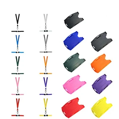 Quality Double Sided ID Card Holder With Landscape & Portrait all on one card known as a dual id card holder These Holders Will Hold Two Cards or You Could Just Use For One Card & Use The Reverse For Your Oyster Card Each Lanyard Has A Strong Lobster Clip that swivels & each neck strap lanyard comes with a built in safety breakaway clip. 10 different coloured ID card Holders white, blue, red, green, orange, pink, purple, white, black and yellow These lanyards with ID Card holders are great to display your ID Cards at the work place.