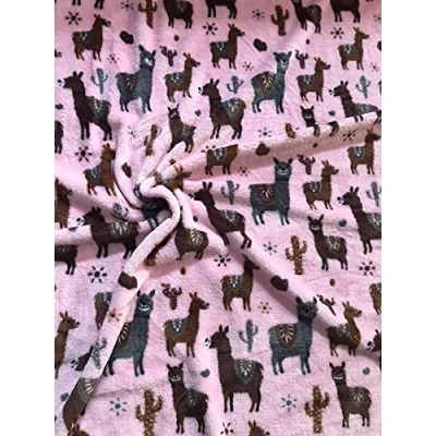 Double Sided Super Soft Cuddle Fleece Fabric Material Pink Llama, 1Mtr 150cmx100cm