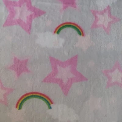 Double Sided Supersoft Cuddle Fleece Fabric Material White Stars & Rainbows, 1Mtr 150cmx100cm