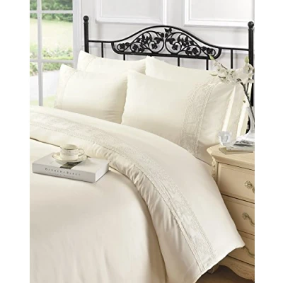 Size: Double, 200 x 200 cm Feature: Excellent Quality Charlotte Lace Cream Bed Design Duvet set. High-Quality Fabric Colour: Cream, Material: 100% Polyester. Created using unique finish to ensure softness and quality Machine Washable at 30ºc, Wash Dark Color Separately (Recommended)