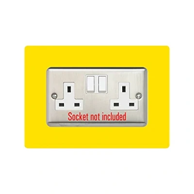 Double Socket Surround, Square Acrylic Back Panel Finger Plate, Decorative Frame for Neat and Tidy Finish, Font Colour:Yellow
