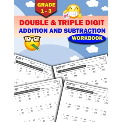 Double & Triple Digit Addition and Subtraction Workbook: Math Drills Grades 1 3 with Answer Key, Practice 100 Days Problem for Kids Ages 7 9
