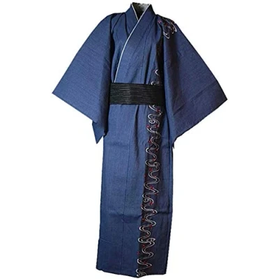Material: Made of pure cotton. Men's Embroidery Haori Yukuta Kimono Gown. Lightweight Comfortable and textured Embroidered Robe. Package includes one kimono Robe+Belt. This Japanese Style Kimono Gown is suitable for home, Khan steam, sauna, leisure.