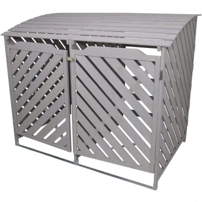 General description Create a stylish feature for your two otherwise ordinary 240L bins with MonsterShop’s beautiful, natural-looking grey wooden wheelie bin storage. This storage unit brilliantly complements all garden settings, providing a wonderful space while keeping your bins in a practical location. Made from strong, long-lasting douglas-fir wood, the frame features a slatted design that helps filter air, maintaining a fresh smell in your garden. The bin store is perfectly designed to hold two standard 240L wheelie bins, but its versatility allows it to store other items such as firewood or essential garden tools. Accessing the bins is easy with two large front doors and open/close chain lids on top. The latched front doors can be secured with a padlock for added security, and a handy fixing kit is included to attach the storage unit to a wall or fence for extra stability. Technical specifications Height: 1220mm / 122cm / 1.2m Width: 1490mm / 149cm / 1.49m Depth: 925mm / 92.5cm /