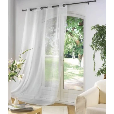 Douceur d'Interieur 140 x 240 cm Luminea Uni Curtain Metal Rings, Blanc