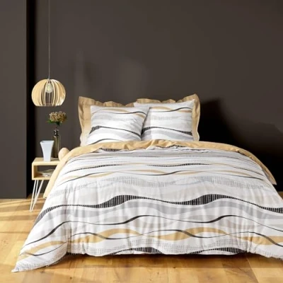 Douceur d'Intérieur, 3 Piece Bedding Set (240 x 220 cm) Vagueline Natural Printed Polycotton