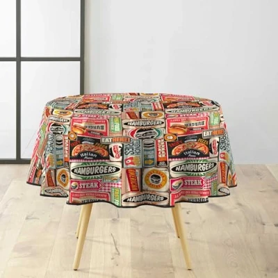 INCLUDED: Round Tablecloth (Ø 160 cm) Americano, Printed PVC PRINTED PVC: PVC in linens such as rugs, placemats or tablecloths provides exceptional durability, resistant to tearing, staining and daily wear and tear, ensuring prolonged use. STAIN PROOF FINISH: The stain barrier creates protection on the textile, making it much easier to remove accidental stains without penetrating the fibres of the fabric. This extends the life of the textile and maintains its aesthetics. Easy care: no washing - do not tumble dry - no ironing Certified purity: The Oeko-Tex seal guarantees environmentally friendly manufacturing and stands for quality and transparency. Representing a sustainable and risk-free choice, our product meets your needs while adhering to strict quality and safety standards.