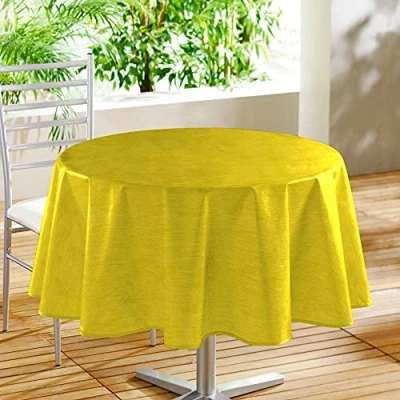 ️ INCLUDED – Round Tablecloth (Diameter 160 cm) Declino Yellow, Printed PVC 💪 PRINTED PVC – PVC in linens such as rugs, placemats or tablecloths provides exceptional durability, resistant to tears, stains and daily wear, ensuring prolonged use. Grained finish: With its grained surface, it adds an interesting texture to the oilcloth during your time at the table while providing maximum protection to your furniture. Easy care – No washing – No tumble drying – No ironing