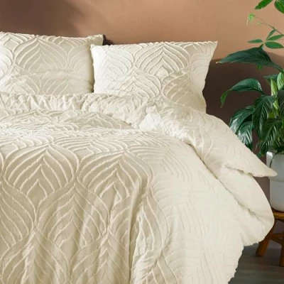Douceur d'Intérieur, Heltie 3 Piece Bedding Set (260 x 240 cm) Ivory, Tufted Microfibre